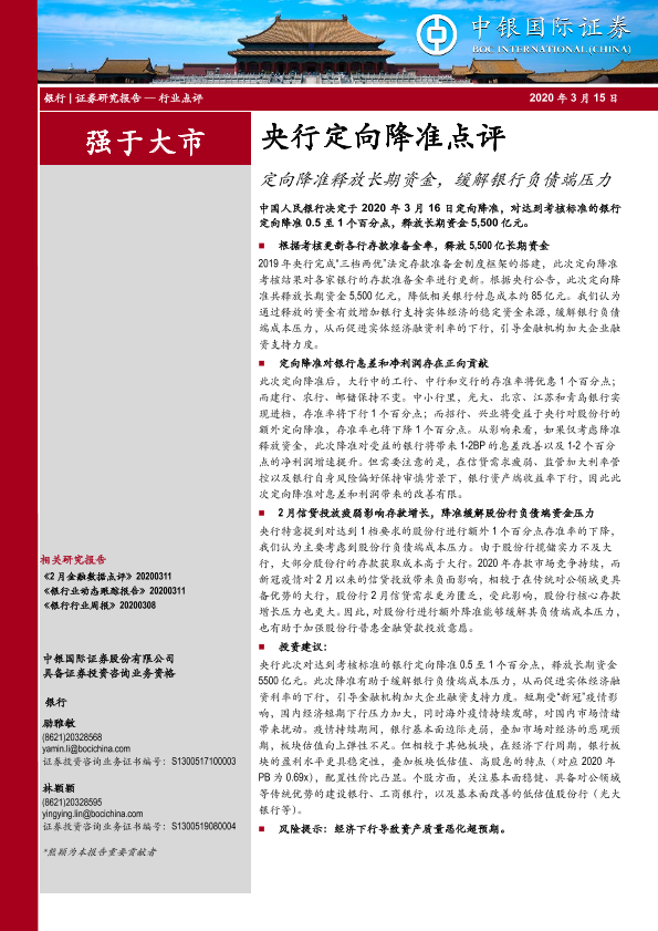 【中银证券】【20200315】央行定向降准点评:定向降准释放长期资金,缓解银行负债端压力-7页