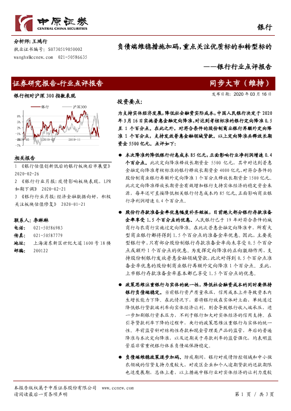 【中原证券】【20200316】银行行业点评报告:负债端维稳措施加码,重点关注优质标的和转型标的-3页