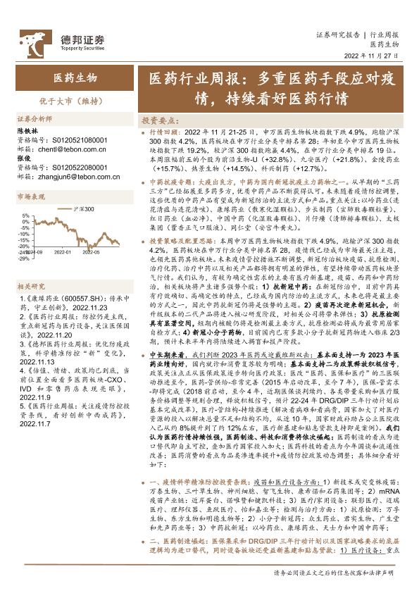 【德邦证券】【20221127】医药行业周报:多重医药手段应对疫情,持续看好医药行情-25页