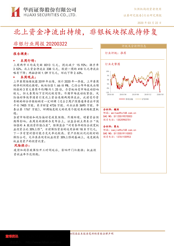 【华西证券】【20200322】非银行业周报:北上资金净流出持续,非银板块探底待修复-11页