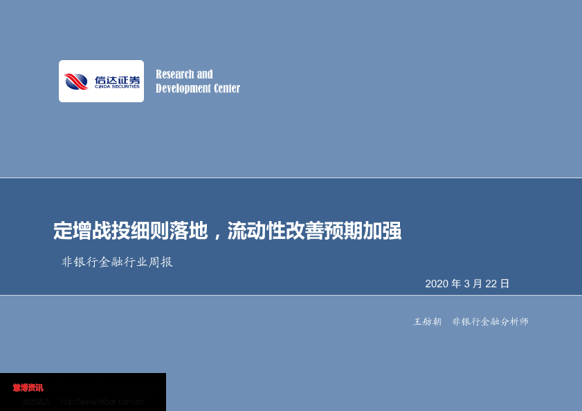 【信达证券】【20200322】非银行金融行业周报:定增战投细则落地,流动性改善预期加强-11页