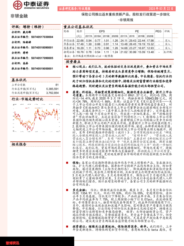 【中泰证券】【20200322】非银周报:保险公司推出返本重疾类新产品,股权发行政策进一步细化-14页