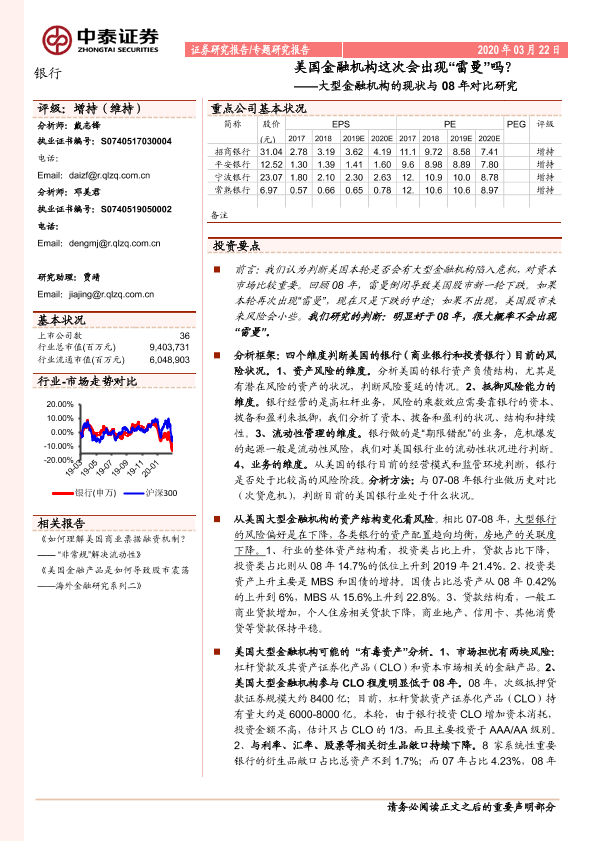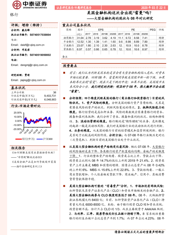 【中泰证券】【20200322】美国金融机构这次会出现“雷曼”吗?——大型金融机构的现状与08年对比研究-30页