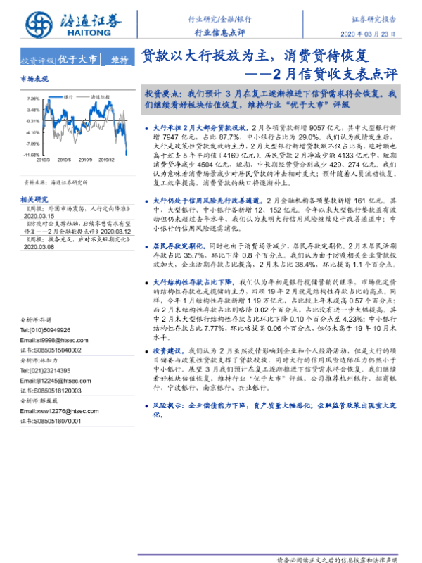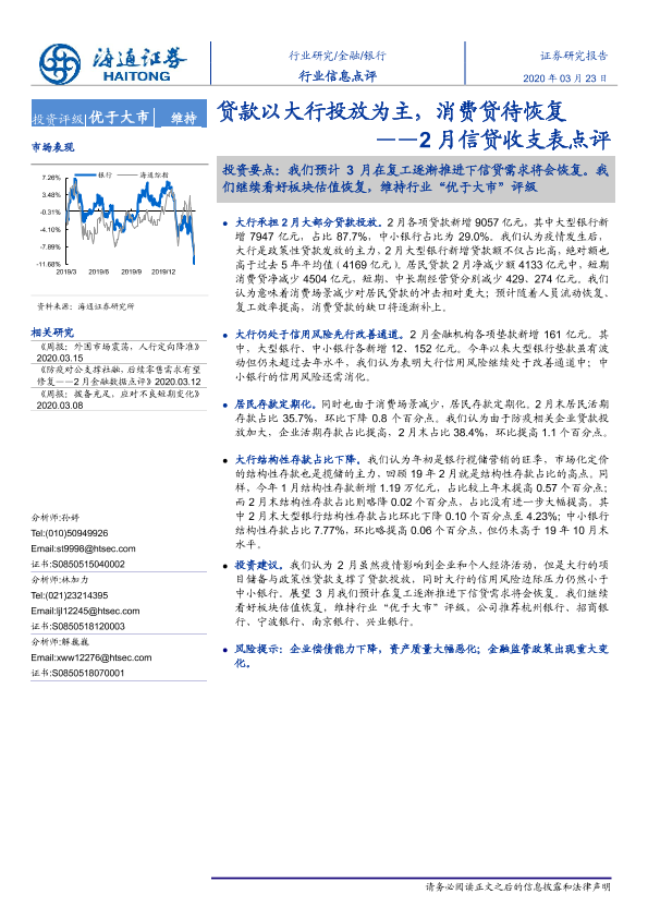 【海通证券】【20200323】2月信贷收支表点评:贷款以大行投放为主,消费贷待恢复-3页