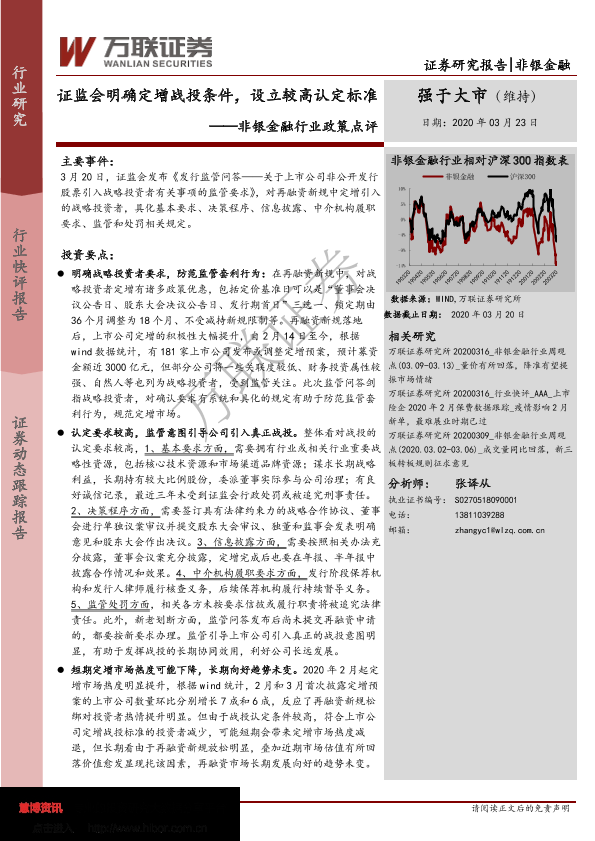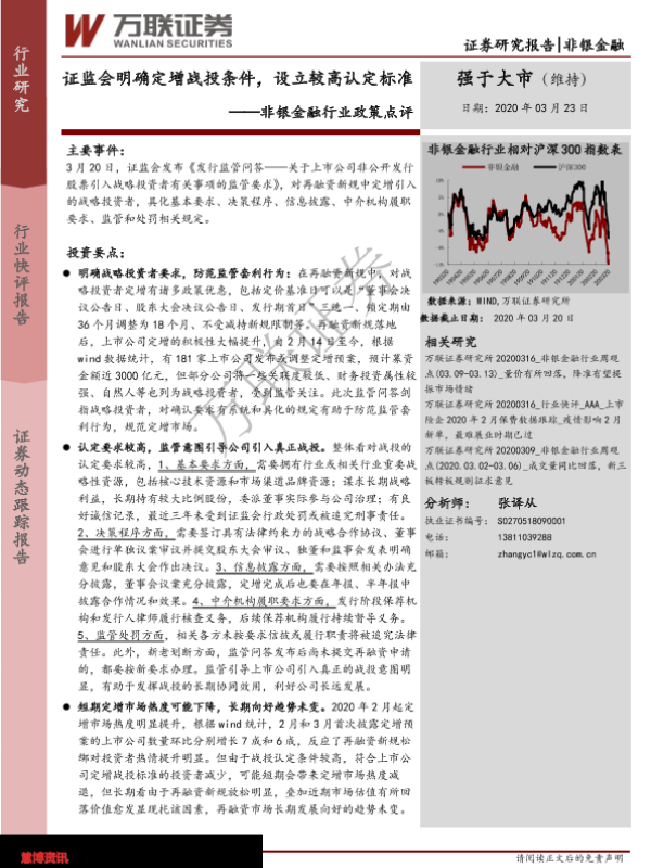 【万联证券】【20200323】非银金融行业政策点评:证监会明确定增战投条件,设立较高认定标准-4页