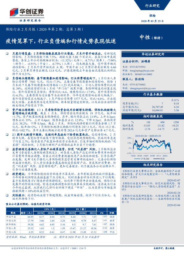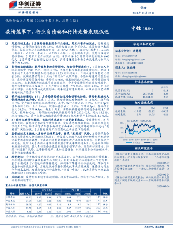 【华创证券】【20200325】保险行业2月月报:疫情笼罩下,行业负债端和行情走势表现低迷-18页