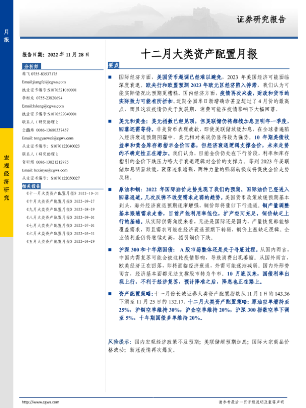 【长城证券】【20221128】十二月大类资产配置月报-15页