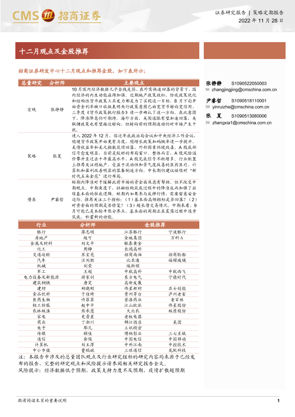 【海通证券】【20221128】十二月观点及金股推荐-26页
