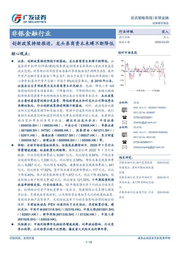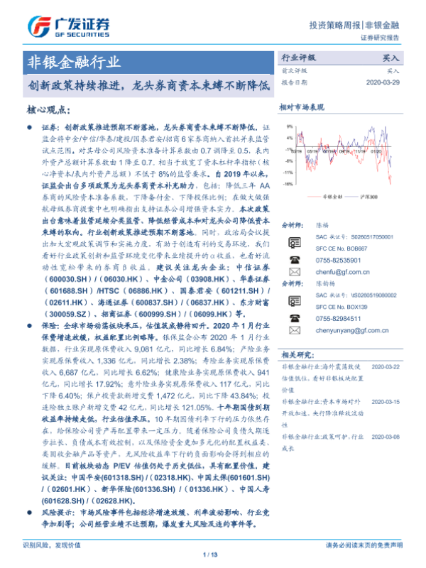 【广发证券】【20200329】非银金融行业投资策略周报:创新政策持续推进,龙头券商资本束缚不断降低-13页