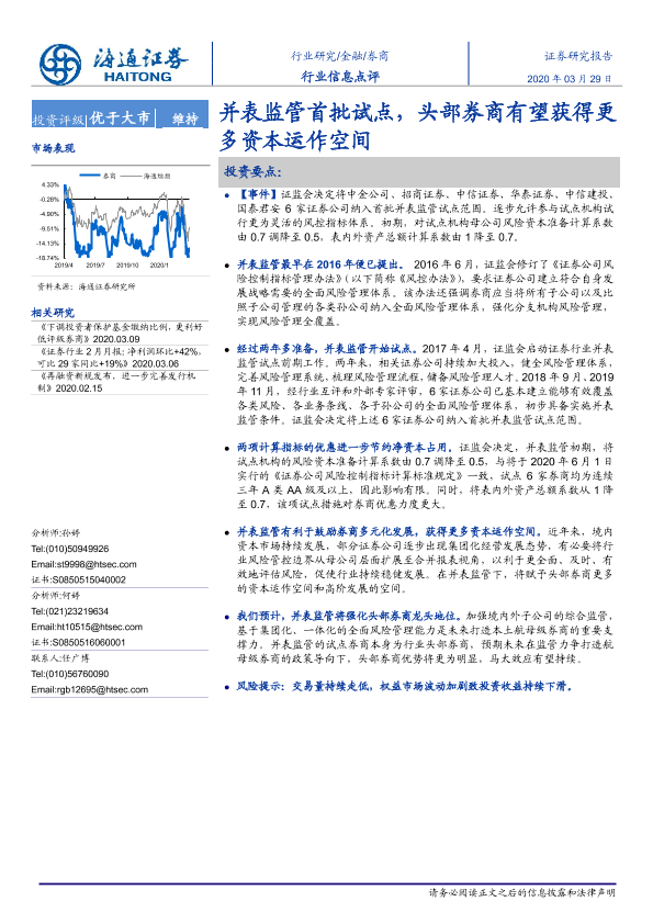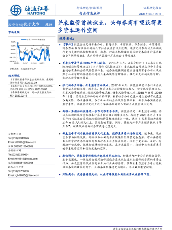 【海通证券】【20200329】券商行业信息点评:并表监管首批试点,头部券商有望获得更多资本运作空间-2页