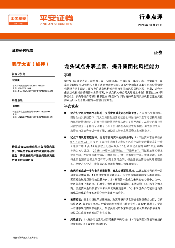 【平安证券】【20200329】证券行业点评:龙头试点并表监管,提升集团化风控能力-2页