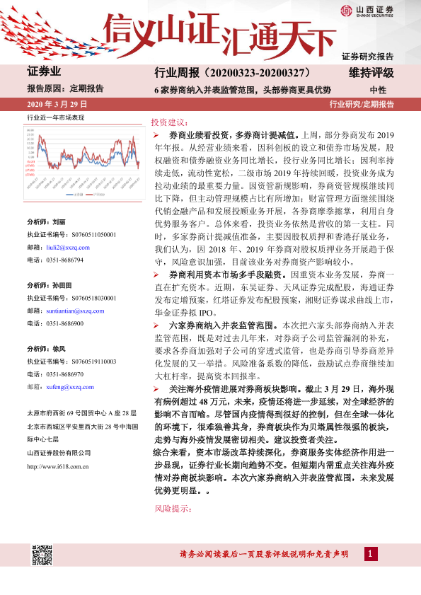 【山西证券】【20200329】证券业行业周报:6家券商纳入并表监管范围,头部券商更具优势-10页