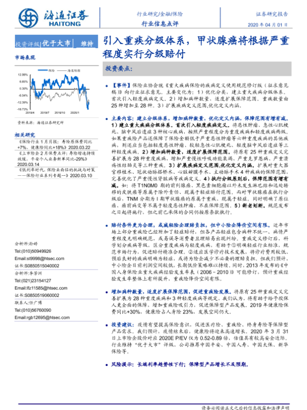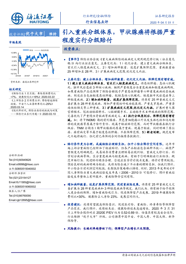 【海通证券】【20200401】保险行业信息点评:引入重疾分级体系,甲状腺癌将根据严重程度实行分级赔付-3页