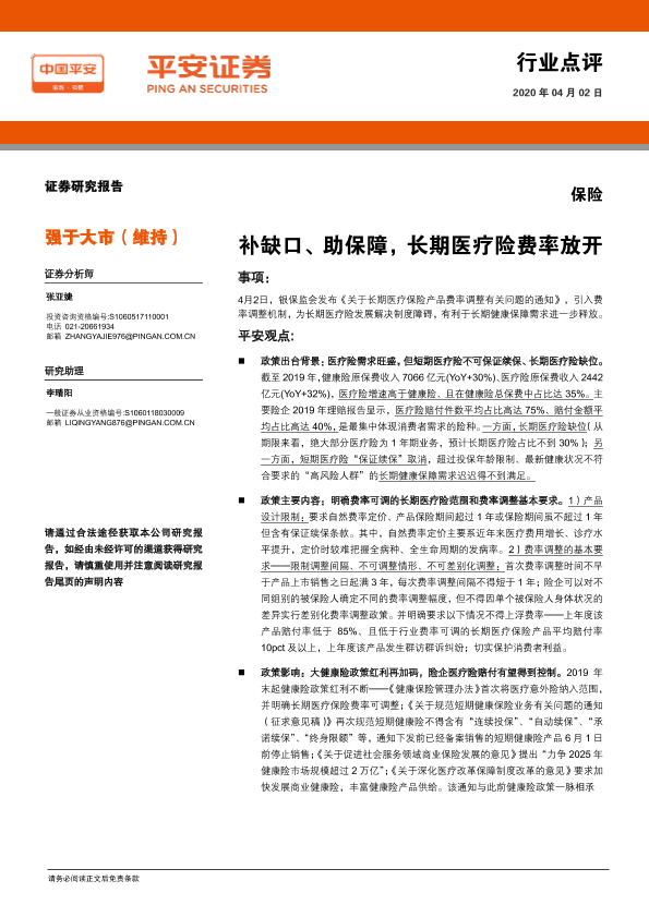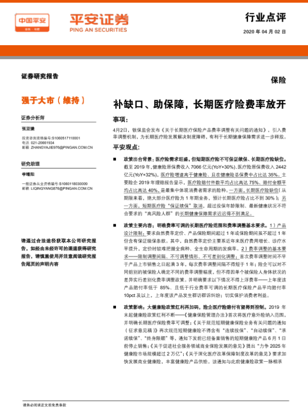 【平安证券】【20200402】补缺口、助保障,长期医疗险费率放开-3页