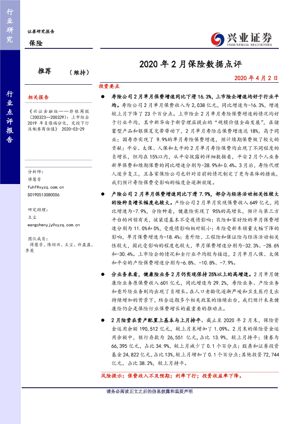 【兴业证券】【20200402】2020年2月保险数据点评-6页
