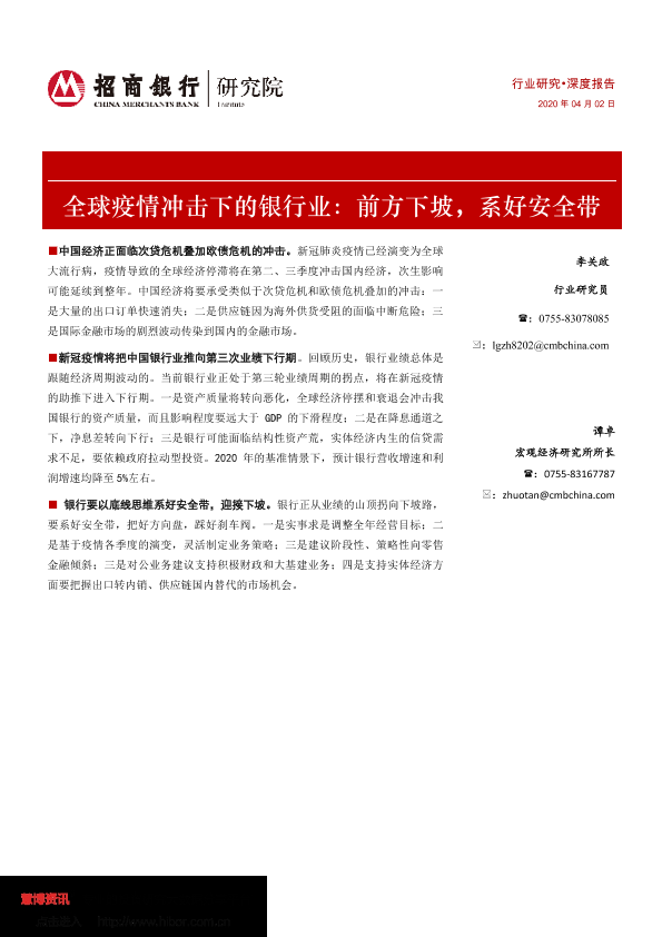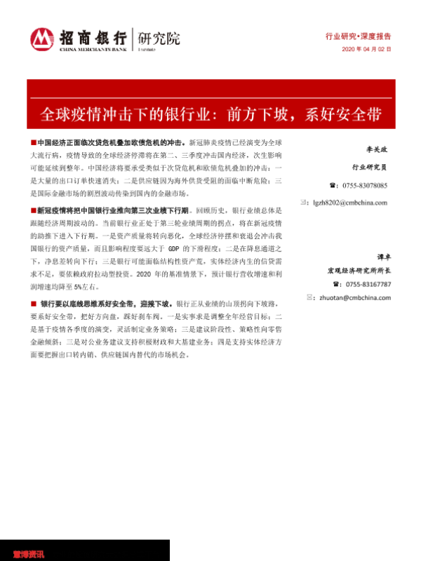 【招商银行】【20200402】全球疫情冲击下的银行业:前方下坡,系好安全带-14页