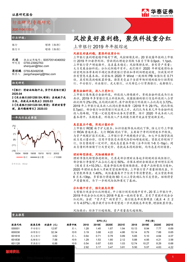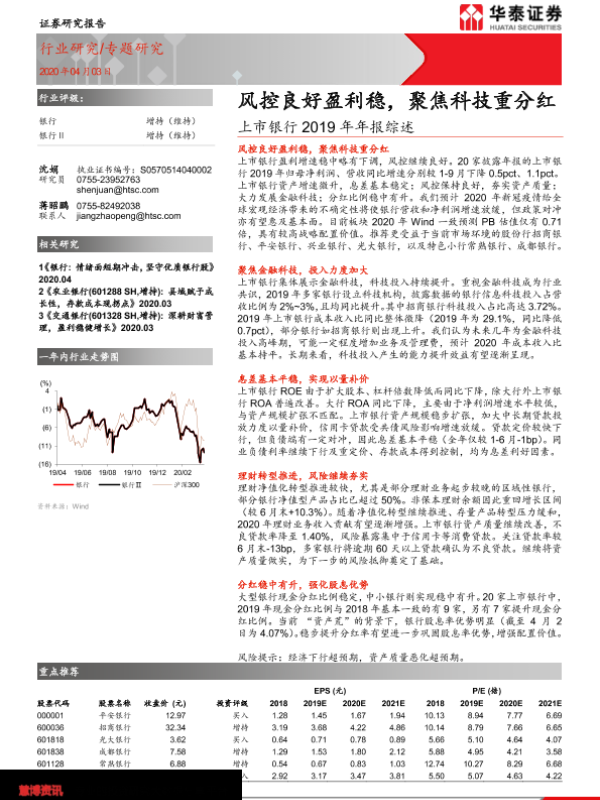 【华泰证券】【20200403】上市银行2019年年报综述:风控良好盈利稳,聚焦科技重分红-12页