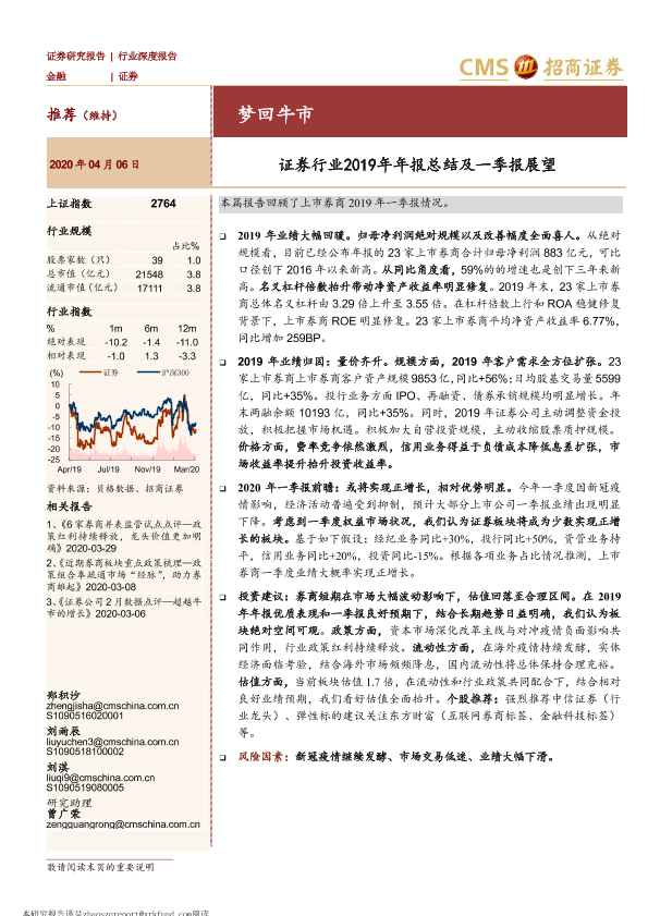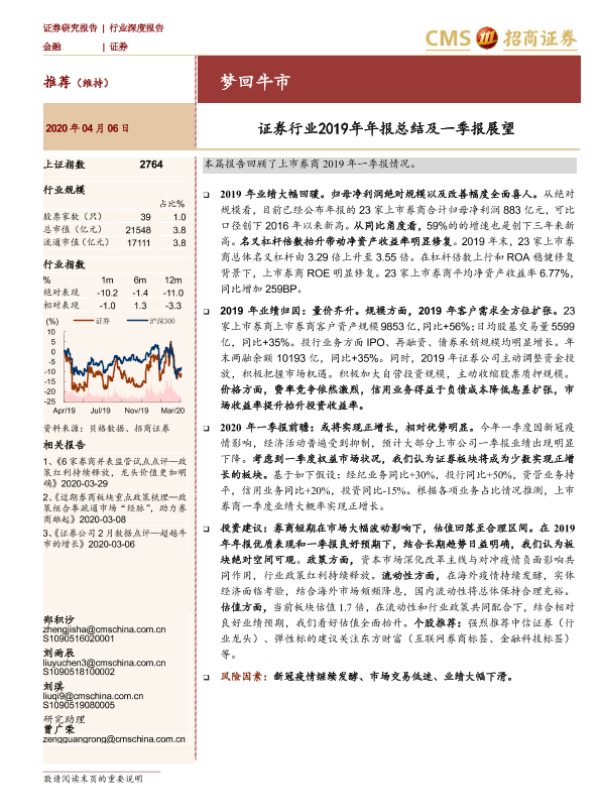 【海通证券】【20200406】证券行业2019年年报总结及一季报展望:梦回牛市-18页