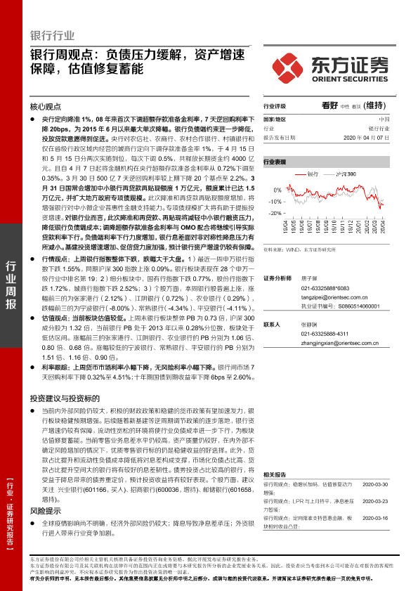 【东方证券】【20200407】银行周观点:负债压力缓解,资产增速保障,估值修复蓄能-19页