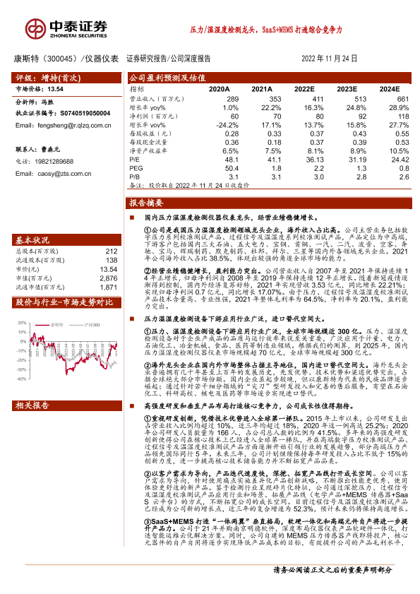 【中泰证券】【20221124】压力温湿度检测龙头,SaaS+MEMS打造综合竞争力-37页