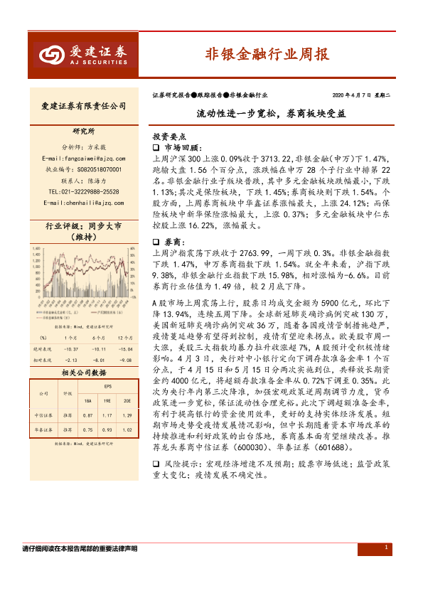 【爱建证券】【20200407】非银金融行业周报:流动性进一步宽松,券商板块受益-10页