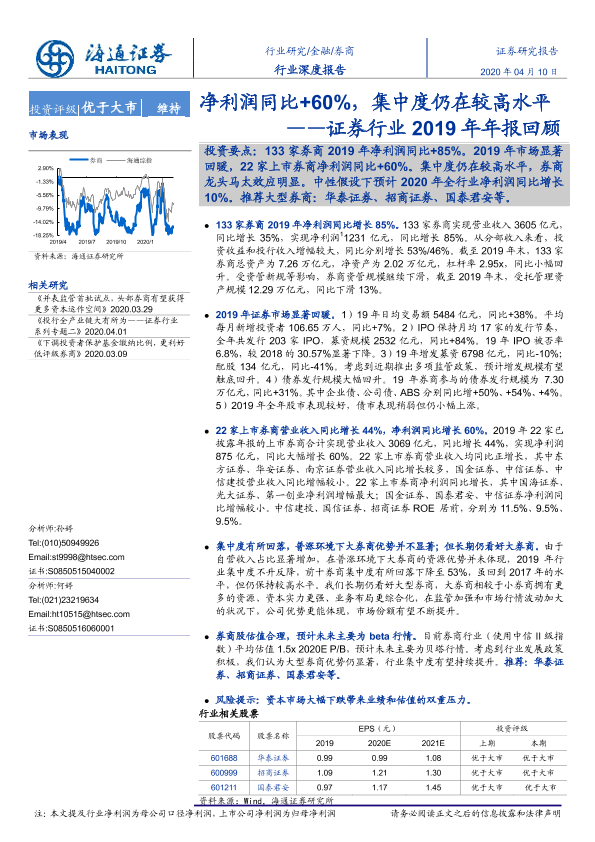 【海通证券】【20200410】证券行业2019年年报回顾:净利润同比+60%,集中度仍在较高水平-19页