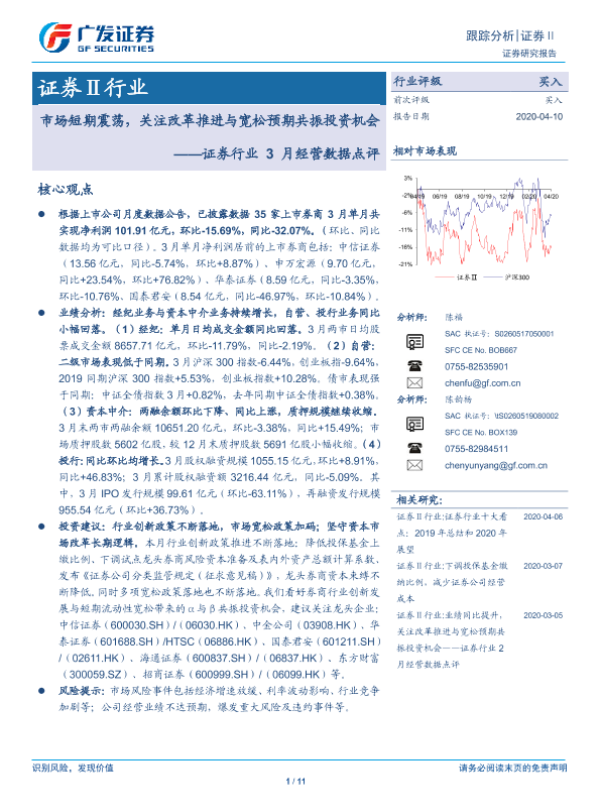 【广发证券】【20200410】市场短期震荡,关注改革推进与宽松预期共振投资机会——证券行业3月经营数据点评-11页
