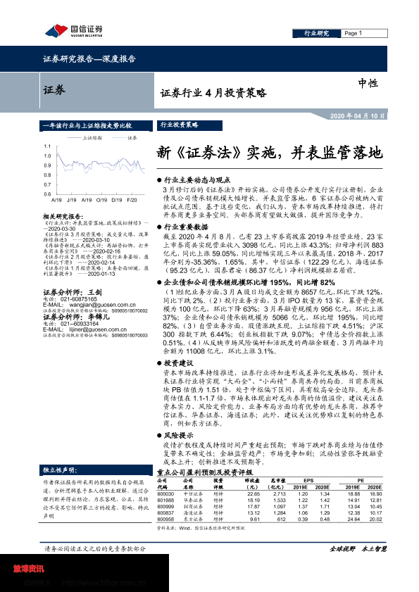 【国信证券】【20200410】证券行业4月投资策略:新《证券法》实施,并表监管落地-7页