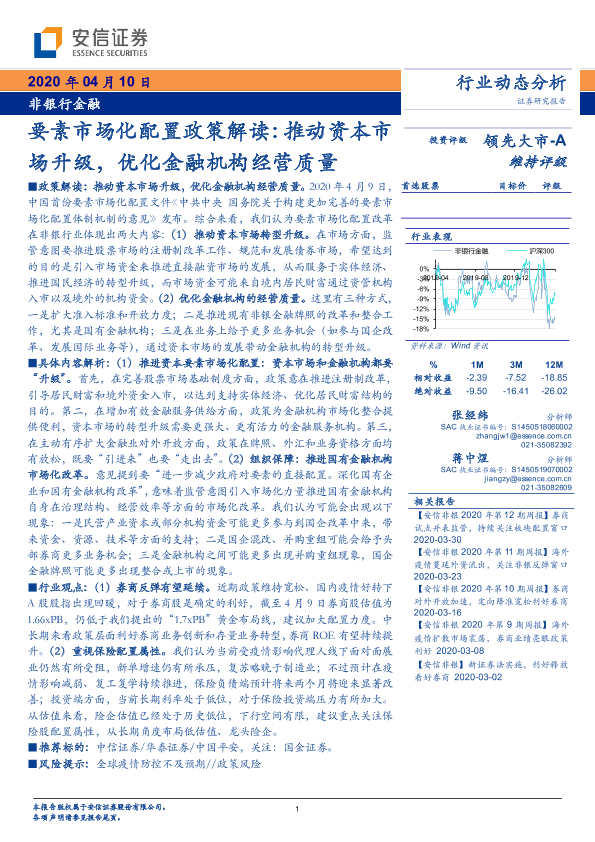 【安信证券】【20200410】非银行金融:要素市场化配置政策解读:推动资本市场升级,优化金融机构经营质量-6页