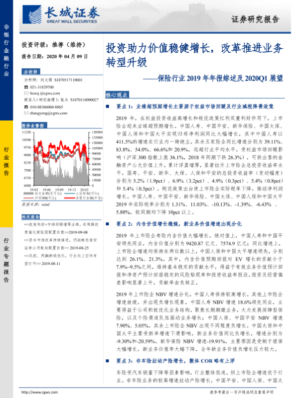 【长城证券】【20200409】保险行业2019年年报综述及2020Q1展望-32页