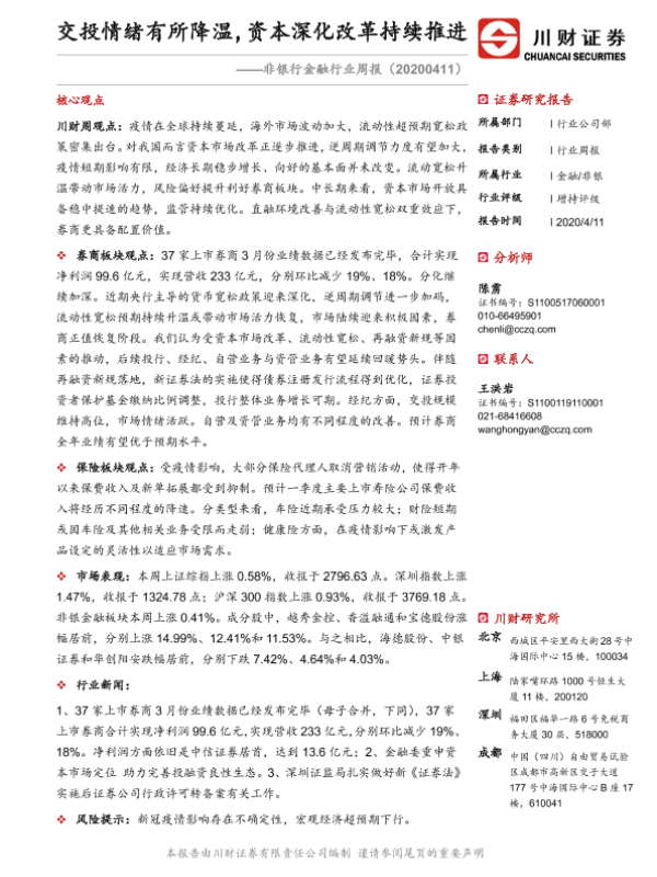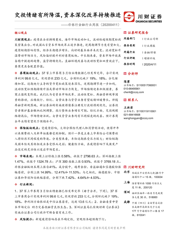【川财证券】【20200411】非银行金融行业周报:交投情绪有所降温,资本深化改革持续推进-10页