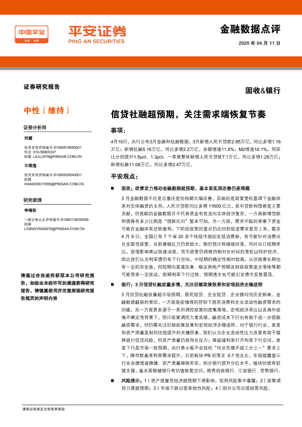 【平安证券】【20200411】固收&银行:信贷社融超预期,关注需求端恢复节奏-5页