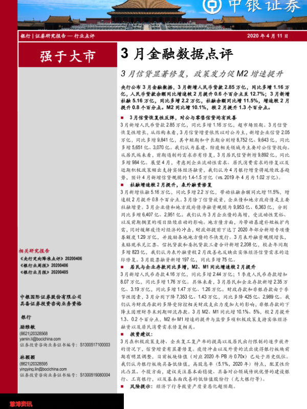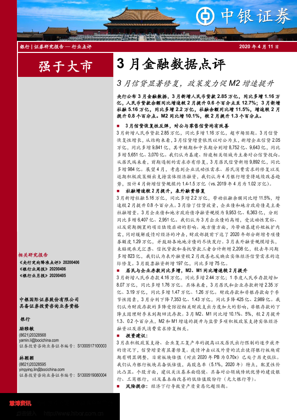 【中银证券】【20200411】3月信贷显著修复,政策发力促M2增速提升-6页