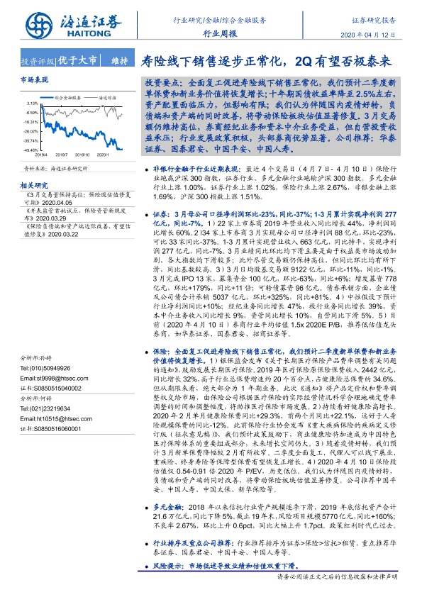 【海通证券】【20200412】寿险线下销售逐步正常化,2Q有望否极泰来-9页