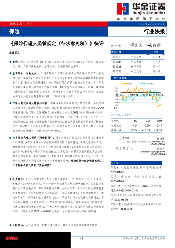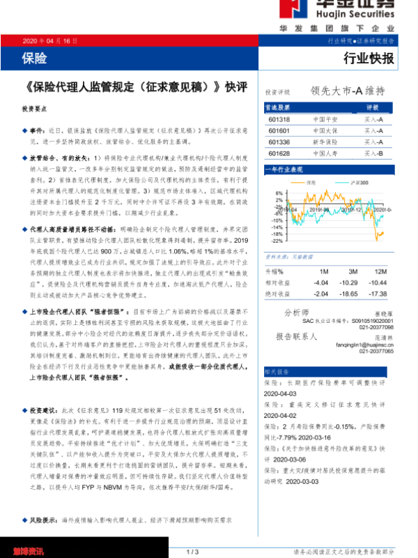 【华金证券】【20200416】《保险代理人监管规定(征求意见稿)》快评-3页