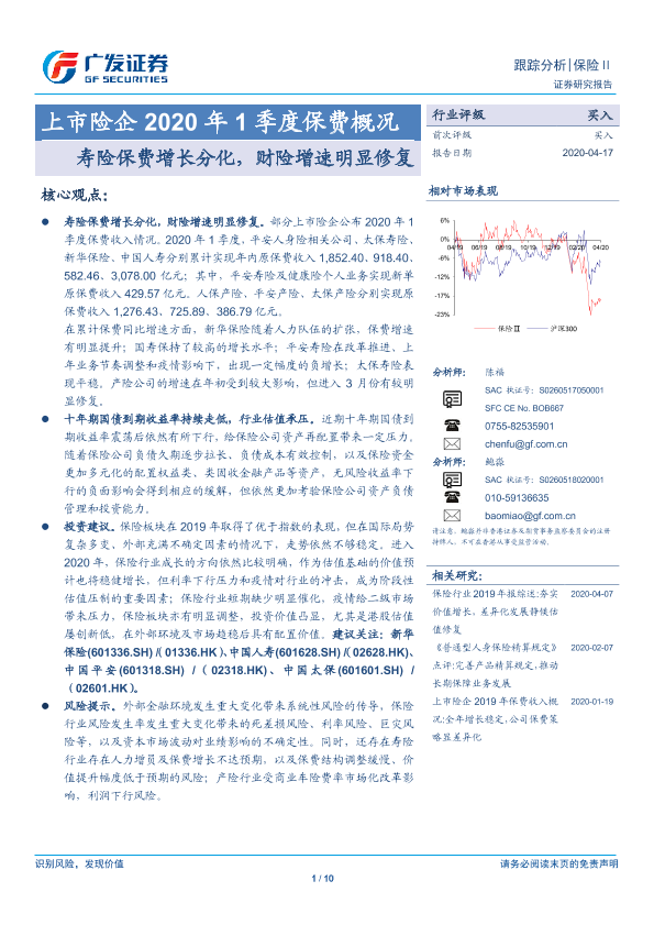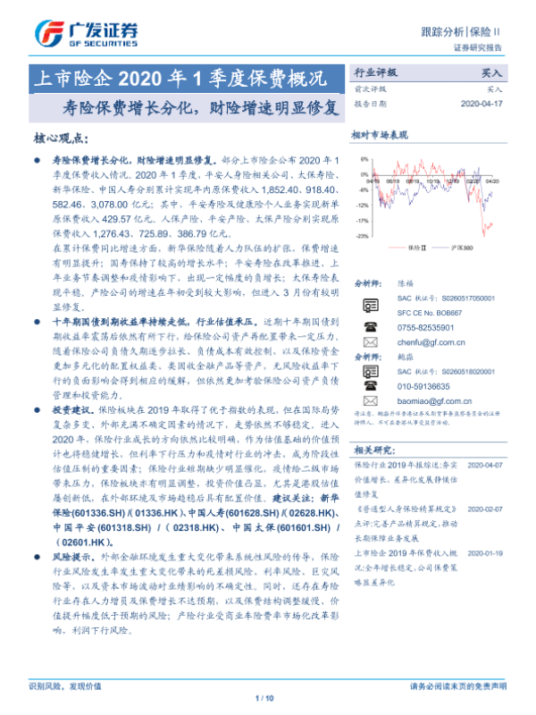 【广发证券】【20200417】上市险企2020年1季度保费概况-10页