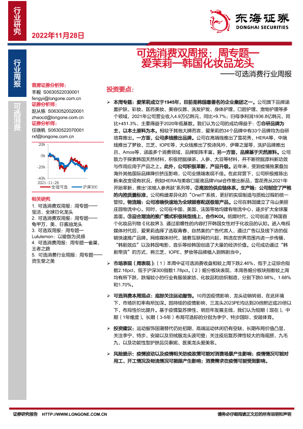 【东海证券】【20221128】可选消费双周报:周专题—爱茉莉—韩国化妆品龙头-18页