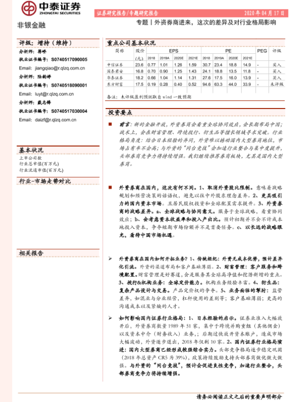 【中泰证券】【20200417】外资券商进来,这次的差异及对行业格局影响-28页