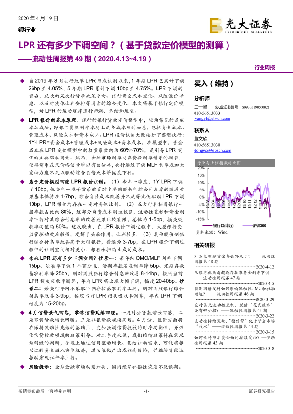 【光大证券】【20200419】银行业流动性周报第49期:LPR还有多少下调空间?(基于贷款定价模型的测算)-10页