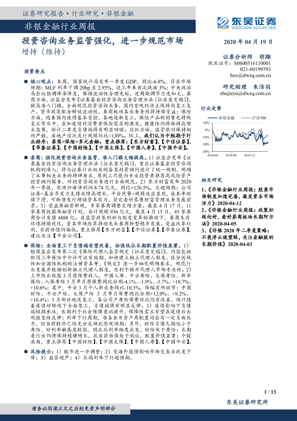 【东吴证券】【20200419】非银金融行业周报:投资咨询业务监管强化,进一步规范市场-13页