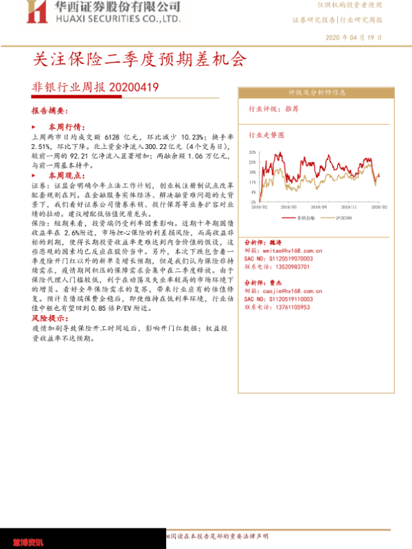 【华西证券】【20200419】关注保险二季度预期差机会-11页