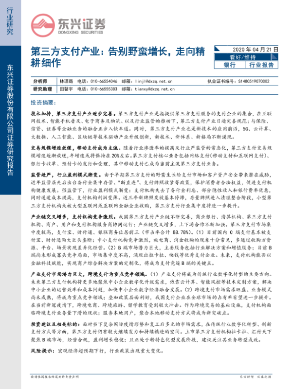 【东兴证券】【20200421】第三方支付产业:告别野蛮增长,走向精耕细作-21页