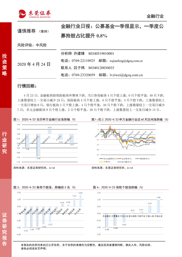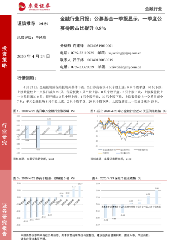 【东莞证券】【20200424】金融行业日报:公募基金一季报显示,一季度公募持股占比提升0.8%-4页