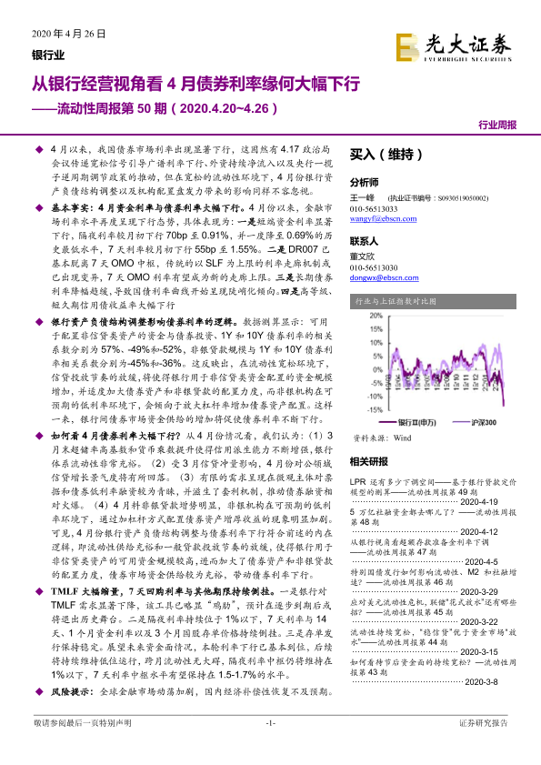 【光大证券】【20200426】从银行经营视角看4月债券利率缘何大幅下行-11页