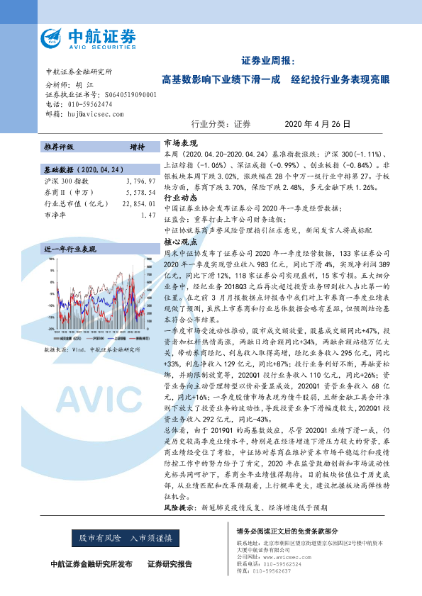 【中航证券】【20200426】证券业周报:高基数影响下业绩下滑一成 经纪投行业务表现亮眼-10页