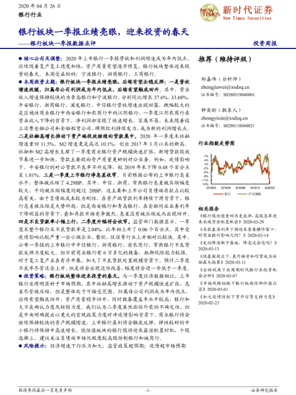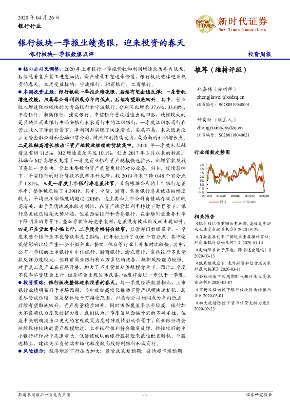 【新时代证券】【20200426】银行板块一季报数据点评:银行板块一季报业绩亮眼,迎来投资的春天-19页