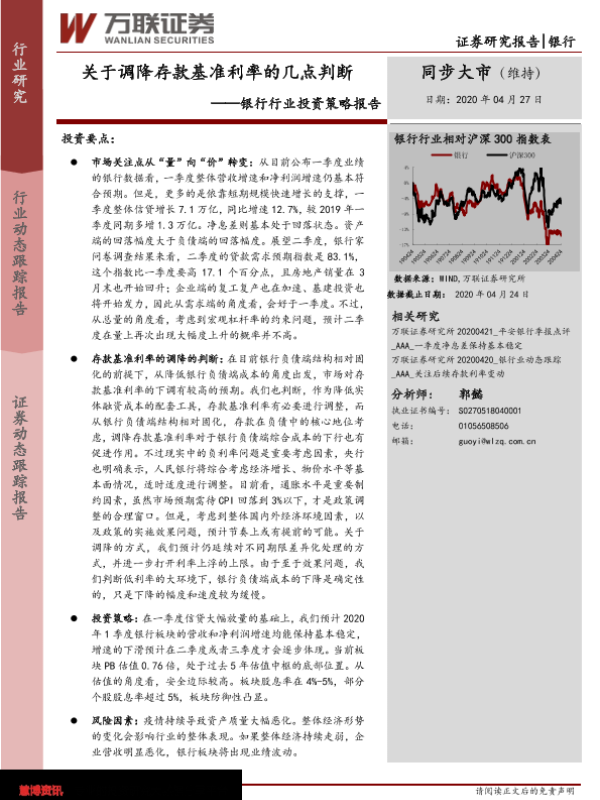存款基准利率 投资策略 经济环境 货币政策 银行行业