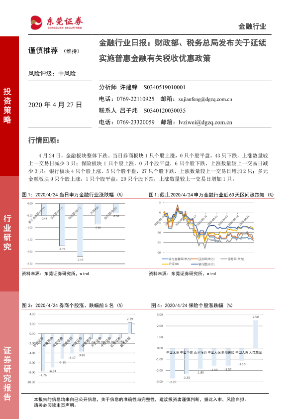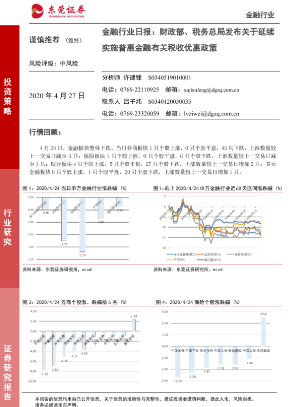 【东莞证券】【20200427】金融行业日报:财政部、税务总局发布关于延续实施普惠金融有关税收优惠政策-4页