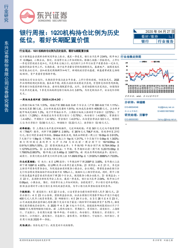 【东兴证券】【20200427】银行周报:1Q20机构持仓比例为历史低位,看好长期配置价值-12页