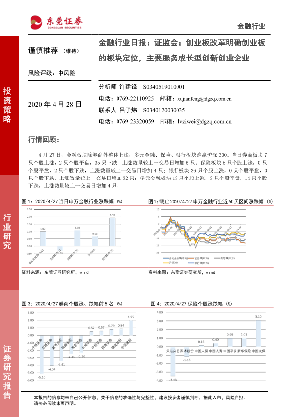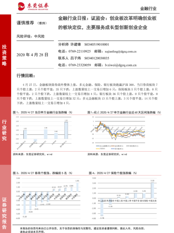 【东莞证券】【20200428】金融行业日报:证监会:创业板改革明确创业板的板块定位,主要服务成长型创新创业企业-4页